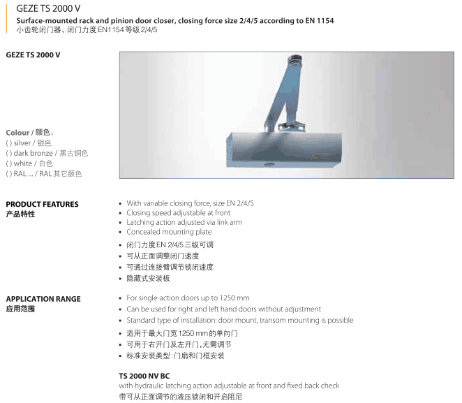 產品描述:閉門器